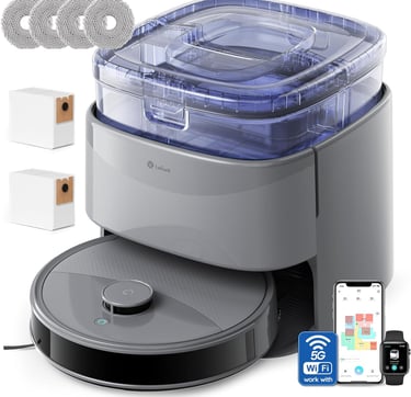 Robot aspiradora y lavasuelos facil de usar y sin ninguna complicacion compatible con el telefono , disponible en color gris (73%de descuento )